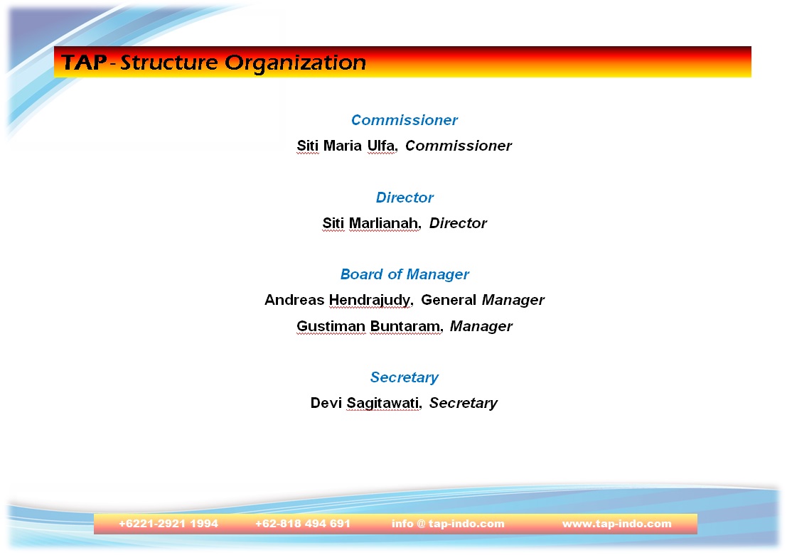 As a company working with the Indonesian Government sector of Aviation, PT. TAP are committed to always looking at improving all aspect of our business and progressing towards the best result to enhance the vision and mission statements. Our basic foundation is our human resources and interrelated sector within our company. These are our main assets and we continually look at methods to add further quality and strength to this foundation.